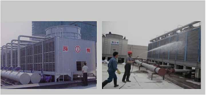 目前常用的冷卻塔外殼都是采用玻璃鋼或PvC材質(zhì)制成。因此,當(dāng)其外觀不潔時(shí),只需用水和清潔劑清洗即可。